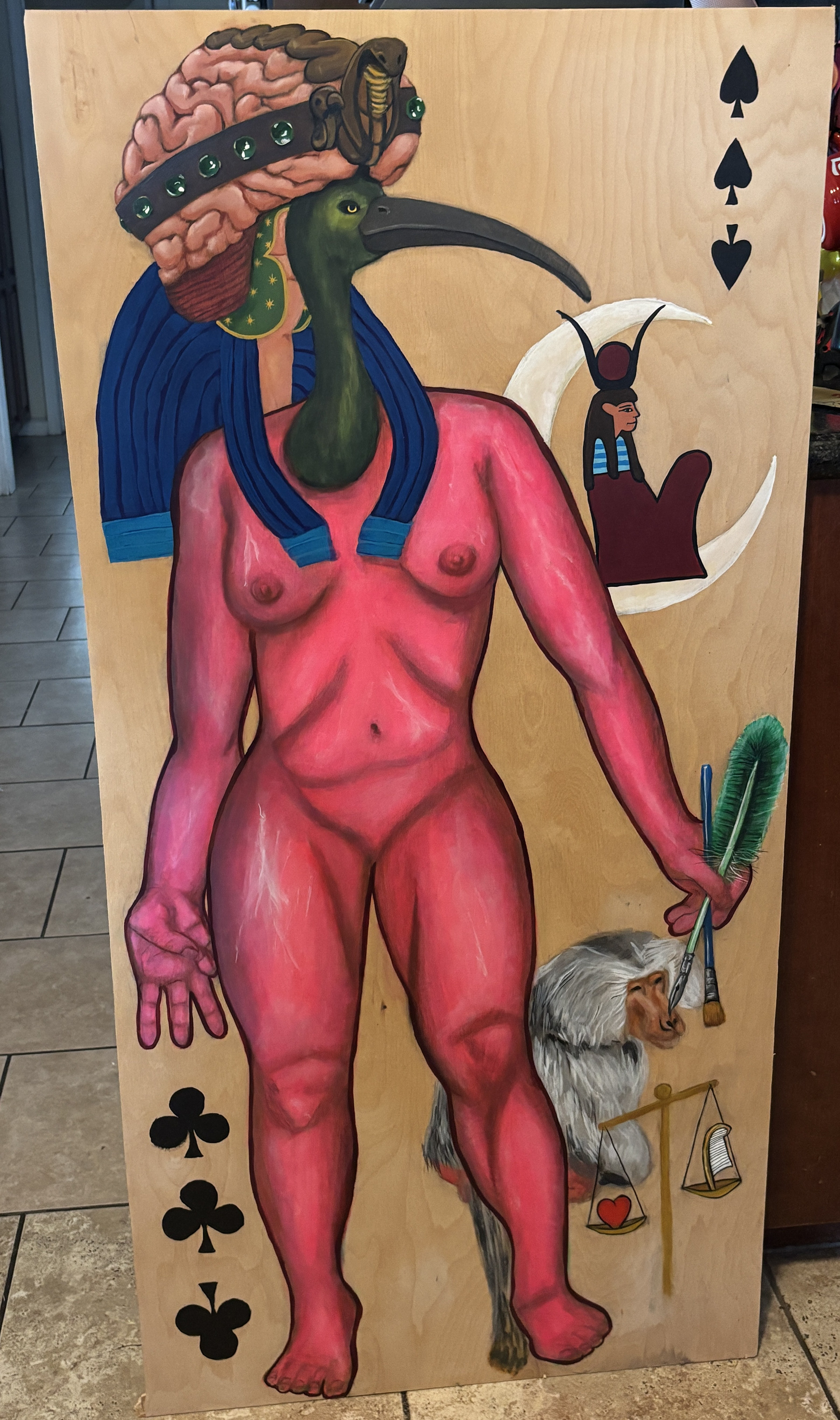 This painting is the result of many hours spent studying Egyptian art, the deck of cards, the Kybalion, the Hermetica and the brain.