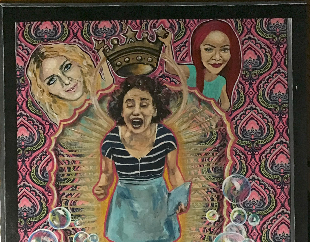 This painting was accepted into the Viva La Mujer All Women Art and Music Festival at Plaza de la Raza in Los Angeles in 2019. Inspired by an episode of Broad C*ty and religious iconography.