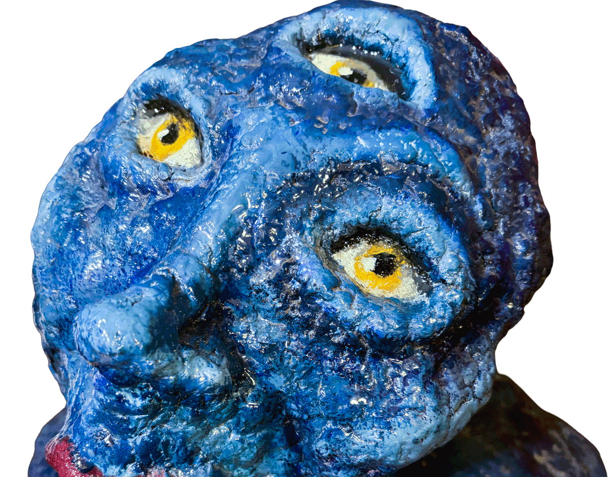 2024- 16x12x12" paper mache, resin- brushed and poured, spray paint and acrylic
