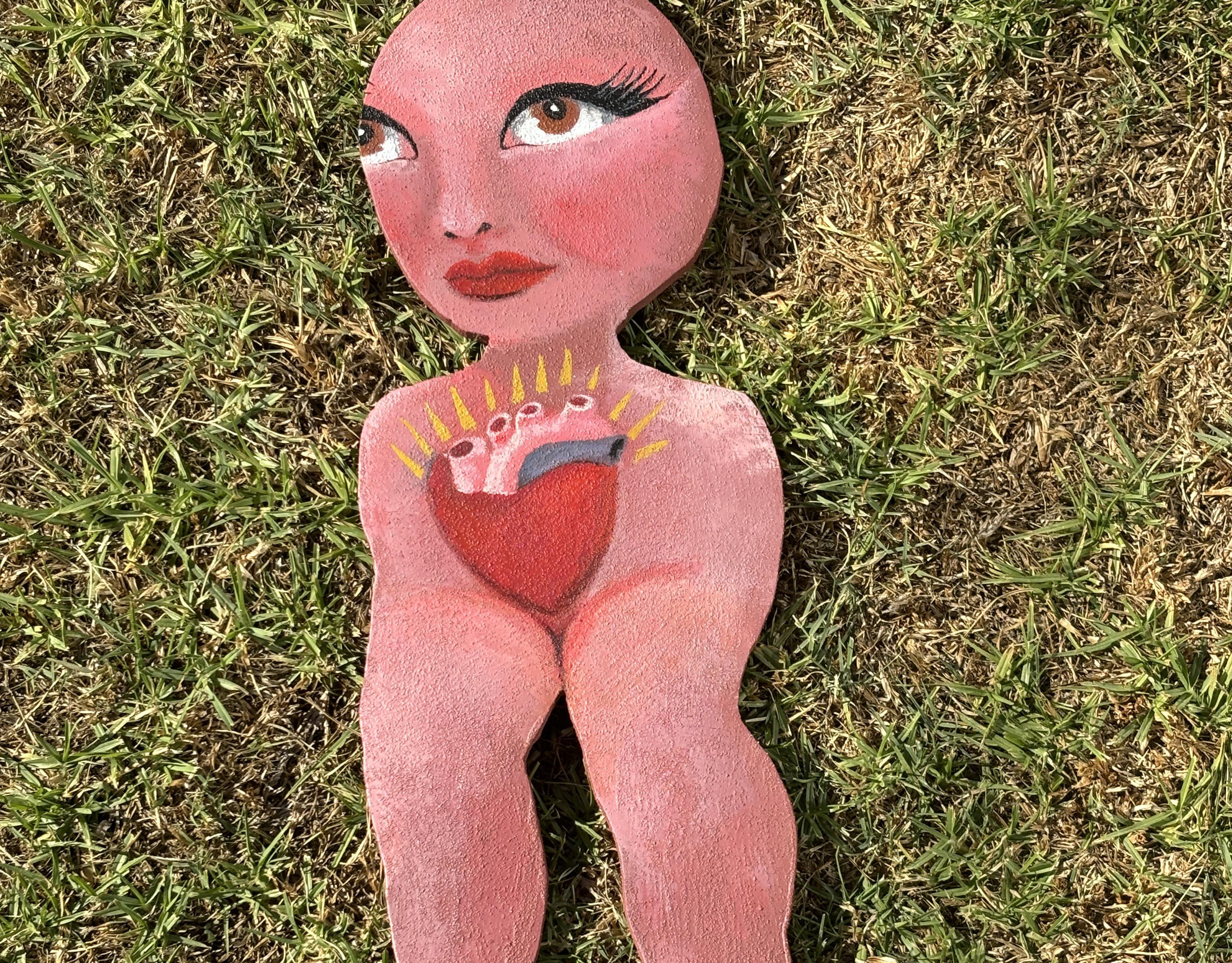 For this series, Angelita cut each piece using a bandsaw and scroll saw. Next, she textured each with a sand and primer mixture then spray painted. Finally, each piece is uniquely hand-painted with acrylic paint.